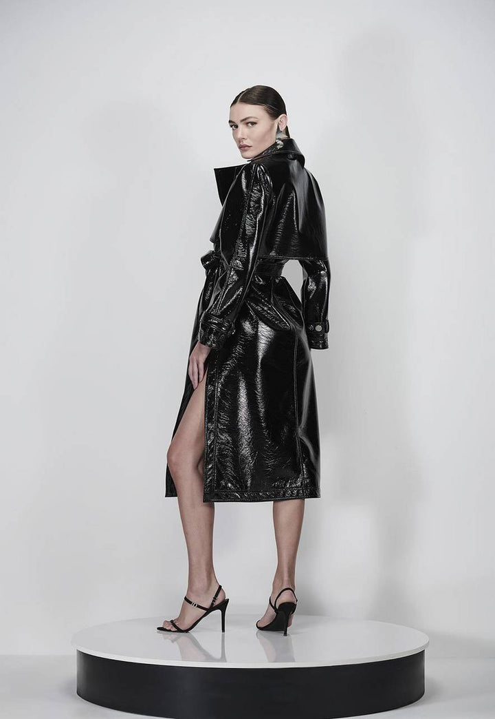 O Trench Coat de Vinil é a peça perfeita para quem deseja ousadia e sofisticação no Inverno 2025. Com um acabamento brilhante e estruturado, ele adiciona uma dose extra de estilo a qualquer look, garantindo uma estética moderna e impactante.